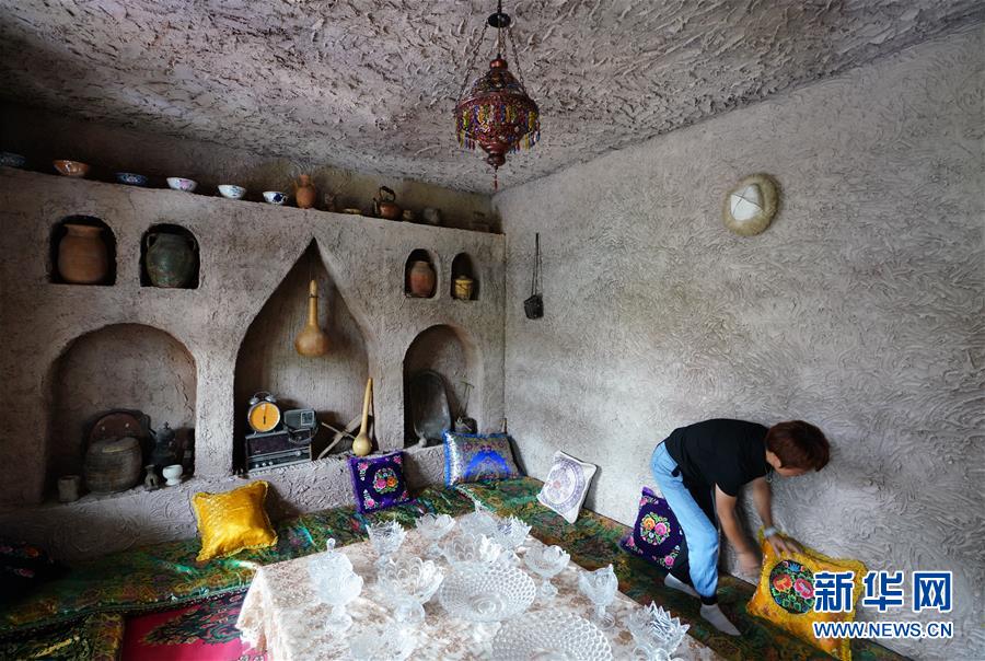 9月1日,在喀什市帕哈太克里乡一处水乡民宿,主人在自家民宿打扫。据了解,这间民宿已经雇佣了当地两名贫困户从事民宿餐饮,帮助他们脱贫增收。 新疆喀什市帕哈太克里乡地处塔克拉玛干沙漠边缘,乡外两河环绕,乡间稻田广布,是远近闻名的稻米产地。近年来,当地依托水稻资源优势,升级稻米产品,打造高端产品。此外,还通过村容村貌整治、引进农耕文化元素、升级田园风光等措施,推动农旅结合,打造出拥有小桥流水与传统民居的“江南水乡”,当地村民在“水乡”民宿、餐饮等岗位实现就业,实现脱贫增收。 新华社记者 陈君清 摄