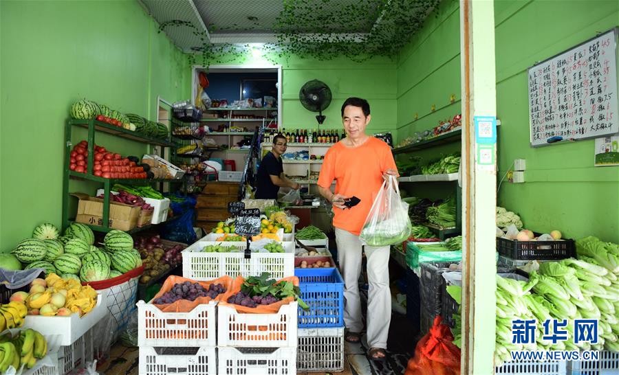 9月5日,杨福根在果蔬店买菜,家里的一日三餐都由他料理。新华社记者翁忻旸摄
