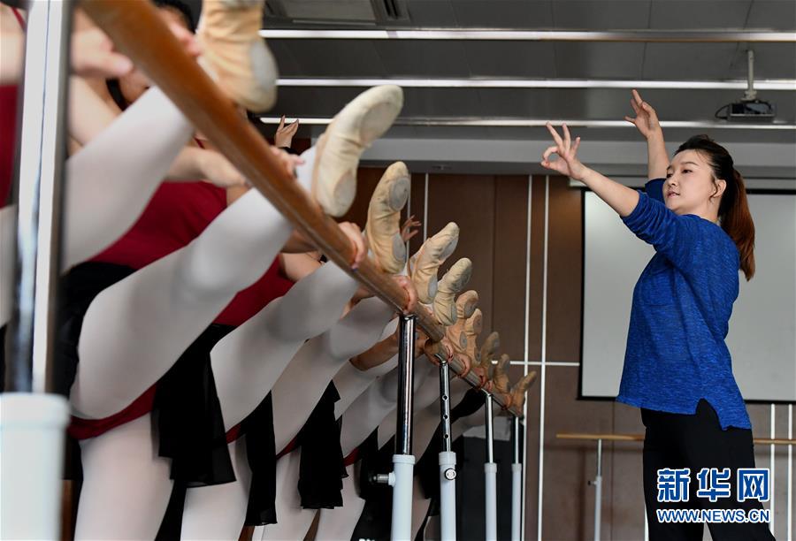 董晶晶在给学生们上舞蹈课,学生们看着她打出的手势节拍做动作(2018年9月6日摄)。董晶晶是郑州师范学院特殊教育学院的一名舞蹈教师,在这个岗位上她已经工作了近10年。 新华社记者李安摄