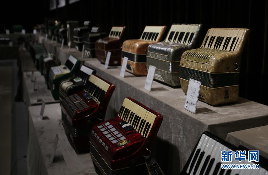 这是9月4日在新疆塔城市手风琴博物馆内拍摄的手风琴展品。 塔城市手风琴博物馆位于塔城群众文化宫三楼,总面积500平方米。展馆收藏有中国、俄罗斯、德国、意大利、乌克兰等10个国家的900余架手风琴,涵盖百乐、东方红、火炬、星海等十多个品牌。手风琴已经成为塔城一张亮丽的名片,充分展示了独具塔城特色的文化,塔城市也被老百姓称为“手风琴之城”。 新华社记者安希雅摄