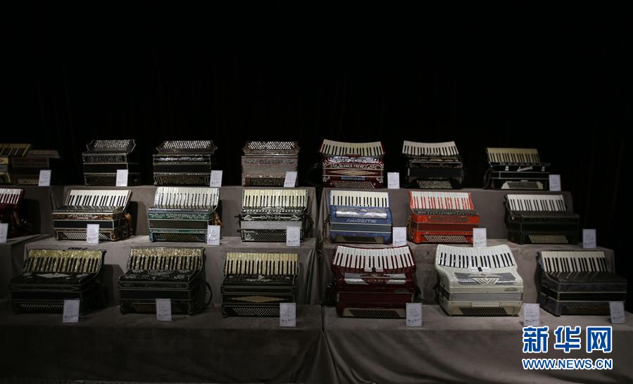 这是9月4日在新疆塔城市手风琴博物馆内拍摄的手风琴展品。 塔城市手风琴博物馆位于塔城群众文化宫三楼,总面积500平方米。展馆收藏有中国、俄罗斯、德国、意大利、乌克兰等10个国家的900余架手风琴,涵盖百乐、东方红、火炬、星海等十多个品牌。手风琴已经成为塔城一张亮丽的名片,充分展示了独具塔城特色的文化,塔城市也被老百姓称为“手风琴之城”。 新华社记者安希雅摄