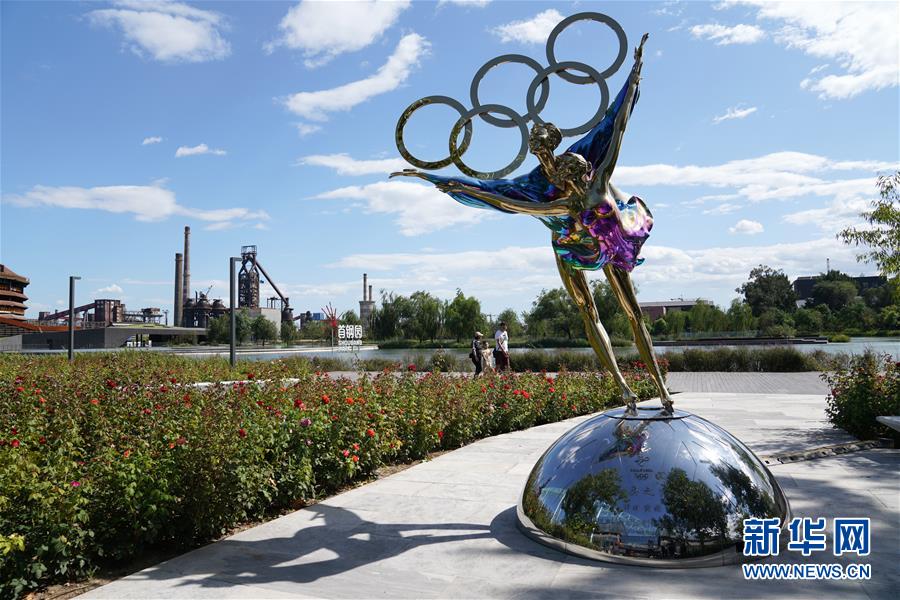 这是8月28日拍摄的位于首钢园内的冬奥之约雕塑。 新华社记者鞠焕宗摄