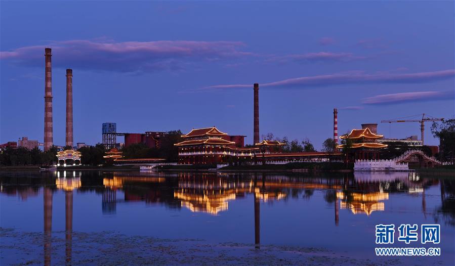 这是8月29日傍晚拍摄的首钢园区群明湖夜景。 新华社发(王京广 摄)