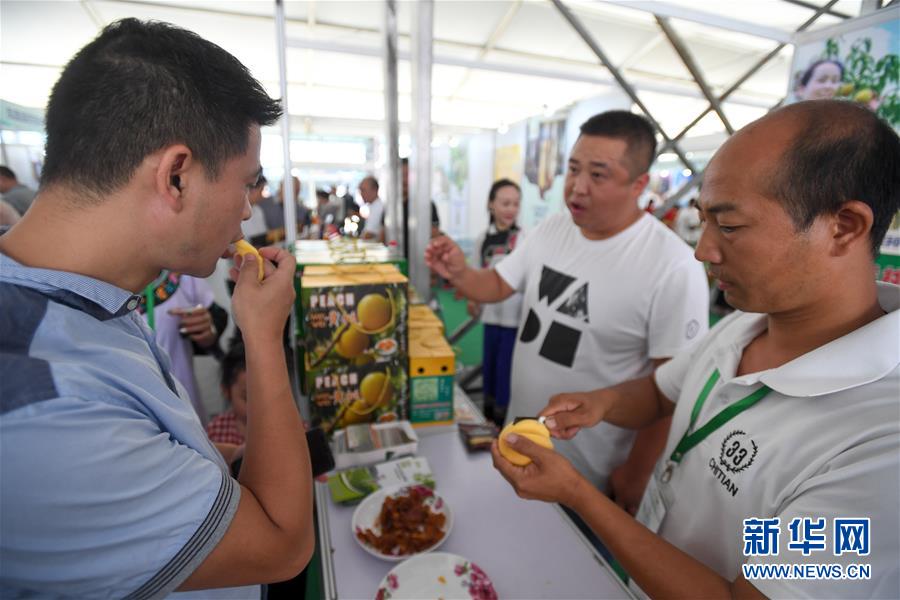 9月7日,市民在农产品产销对接活动现场品尝黄桃。 当日,武陵山区贫困地区农产品产销对接活动在湖南湘西土家族苗族自治州吉首市湘西民族文化园举行。此次活动以“品牌强农、消费扶贫”为主题,搭建贫困地区特色优质农产品产销对接平台,推介武陵山区优质农产品,促进武陵山区优质农产品与市场的有效衔接。本次活动持续到9月8日,展区分为宣传推介区、综合形象展区和企业展示展销区。 新华社记者 陈泽国 摄