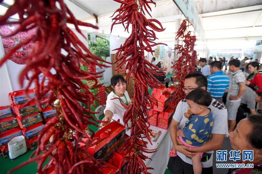 9月7日,市民在农产品产销对接活动现场观看展出的泸溪玻璃椒。 当日,武陵山区贫困地区农产品产销对接活动在湖南湘西土家族苗族自治州吉首市湘西民族文化园举行。此次活动以“品牌强农、消费扶贫”为主题,搭建贫困地区特色优质农产品产销对接平台,推介武陵山区优质农产品,促进武陵山区优质农产品与市场的有效衔接。本次活动持续到9月8日,展区分为宣传推介区、综合形象展区和企业展示展销区。 新华社记者 陈泽国 摄