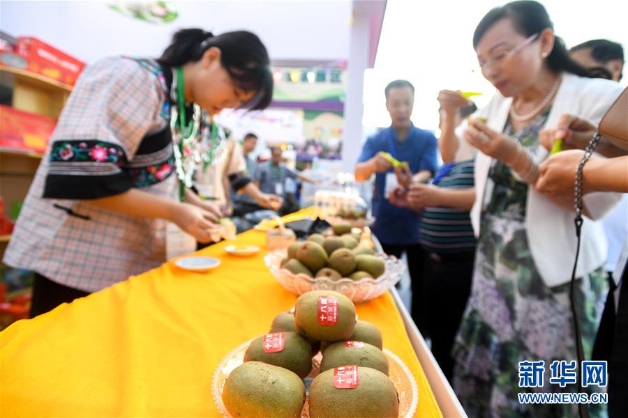 9月7日,市民在农产品产销对接活动现场品尝十八洞猕猴桃。 当日,武陵山区贫困地区农产品产销对接活动在湖南湘西土家族苗族自治州吉首市湘西民族文化园举行。此次活动以“品牌强农、消费扶贫”为主题,搭建贫困地区特色优质农产品产销对接平台,推介武陵山区优质农产品,促进武陵山区优质农产品与市场的有效衔接。本次活动持续到9月8日,展区分为宣传推介区、综合形象展区和企业展示展销区。 新华社记者 陈泽国 摄