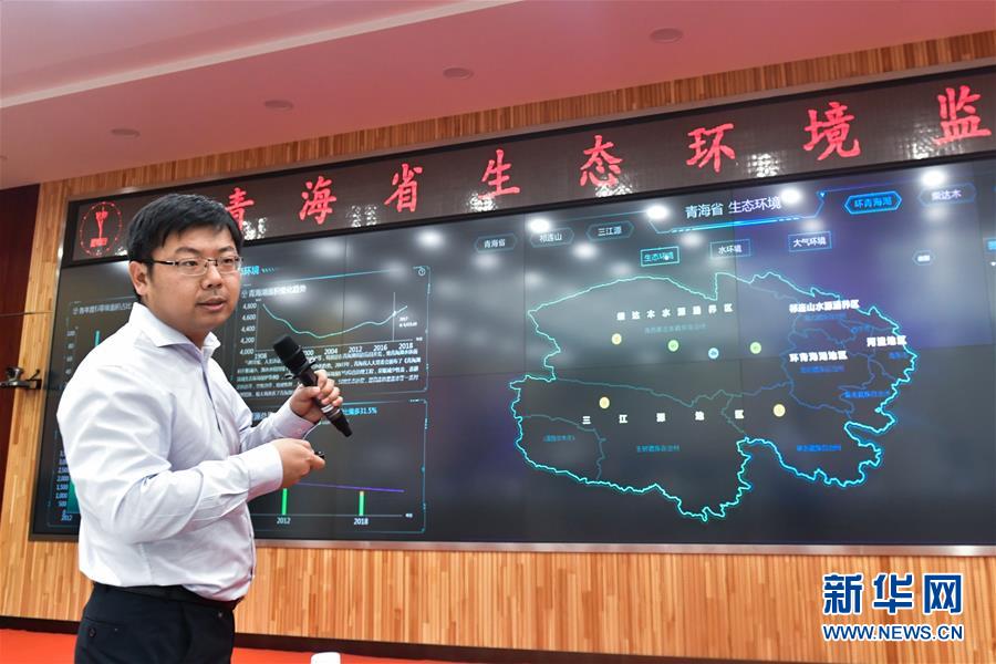 8月25日,青海省生态环境厅遥感监测中心工程师李飞在介绍“生态之窗”数据库系统。新华社记者 张龙 摄