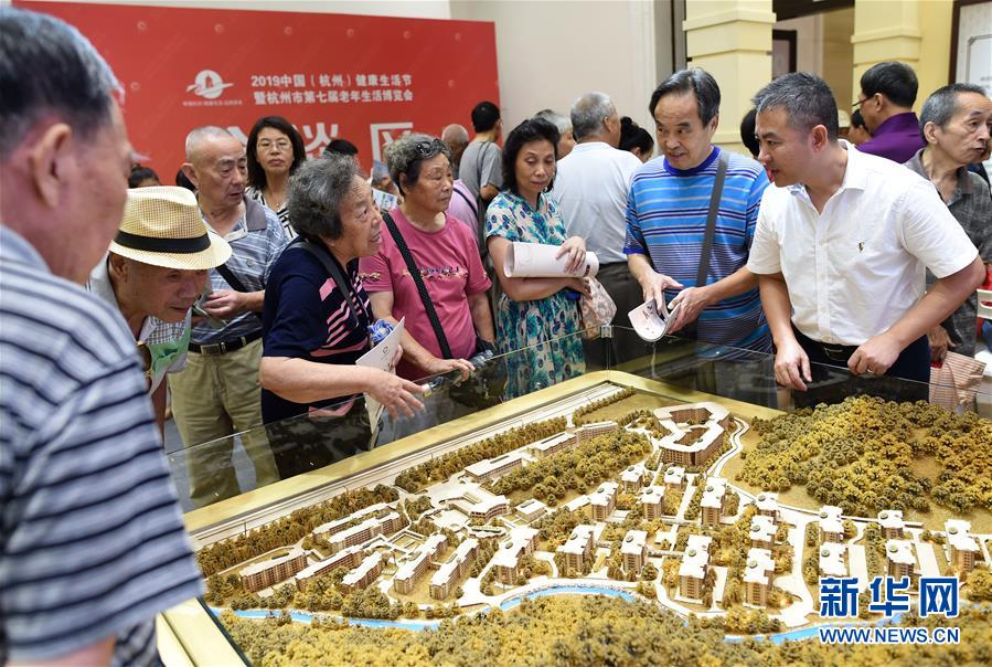 9月7日,观众在一家养老机构推介的老年公寓的模型前参观咨询。 2019中国(杭州)健康生活节暨杭州市第七届老年生活博览会正在杭州举行,博览会以“幸福杭州·健康生活·品质养老”为主题,展会上的养老服务、健康医疗、健康生活等展示内容吸引众多老年观众前来。 据了解,此次展会为期3天,将持续到9月8日,展区面积达到10000平方米。 新华社记者 韩传号 摄