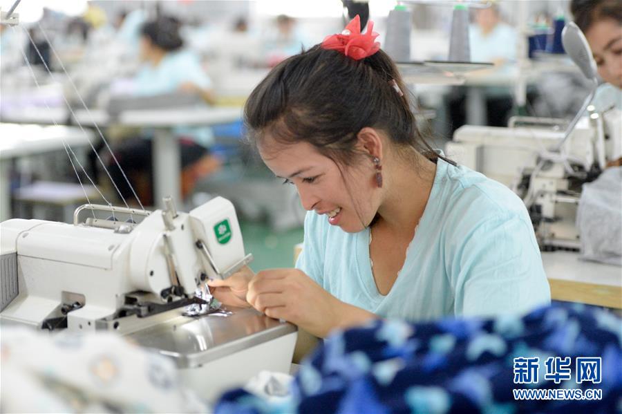 在新疆和田县布扎克乡的思源扶贫产业园,喀玛力汗·吐孙买买提在制作服装(8月31日摄)。新华社记者 丁磊 摄