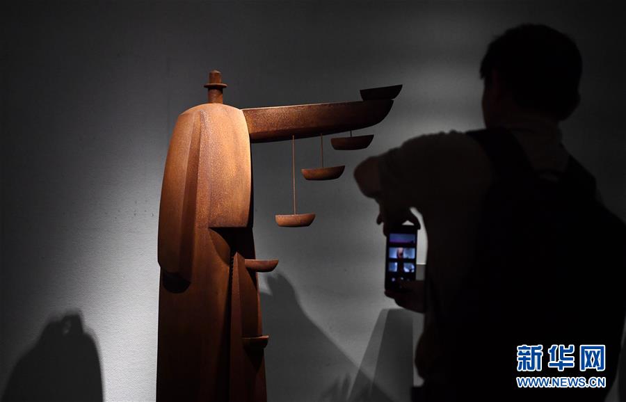 9月7日,观众在位于西安市的陕西省美术博物馆欣赏参展作品。新华社记者 张博文 摄