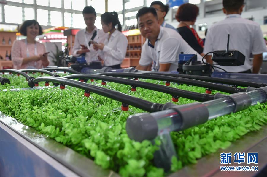 9月5日,在第四届中国-阿拉伯国家博览会高新技术与装备展上,观众参观一款基于农业物联网技术的水肥智能化灌溉系统。新华社记者 李芒茫 摄