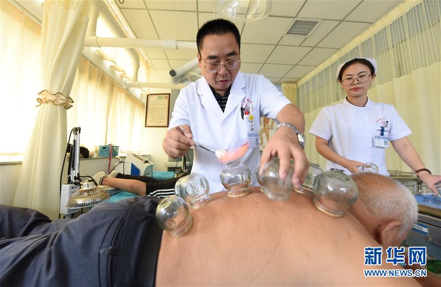 9月7日,南和县中医院医养中心医护人员对老人进行中医诊疗。新华社记者 朱旭东 摄