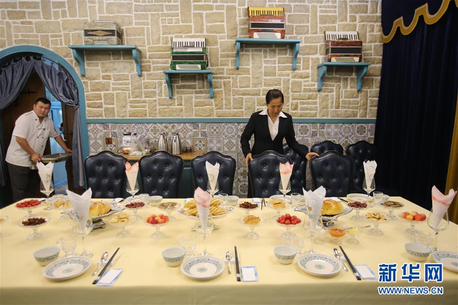 9月4日,工作人员在塔城的贝拉餐厅备餐。贝拉餐厅是一家汇聚多民族美食的餐厅,客人可以在这家餐厅的餐桌上体验到当地各民族的美食。 新华社记者 安希雅 摄