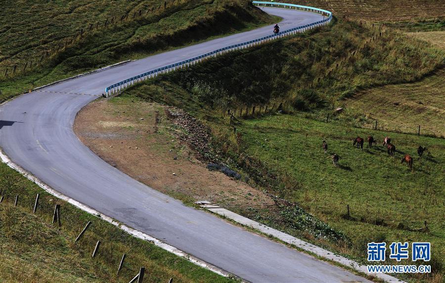 这是9月7日拍摄的那拉提景区风光。 那拉提景区位于新疆新源县境内,三面环山,巩乃斯河蜿蜒流过,保留着浓郁的民俗风情和丰富的草原文化。 新华社记者 安希雅 摄