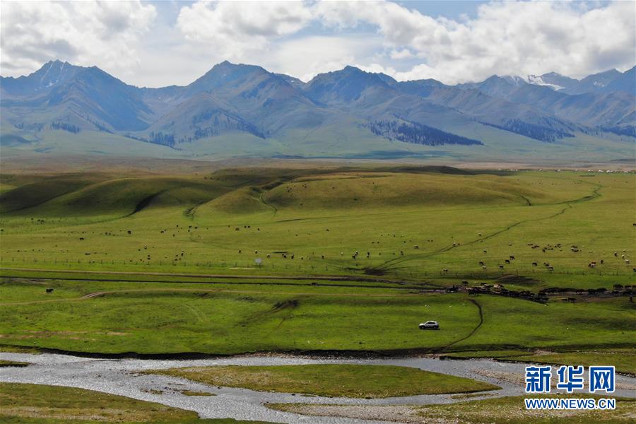 这是9月7日拍摄的那拉提景区风光(无人机拍摄)。 那拉提景区位于新疆新源县境内,三面环山,巩乃斯河蜿蜒流过,保留着浓郁的民俗风情和丰富的草原文化。 新华社记者 邹予 摄