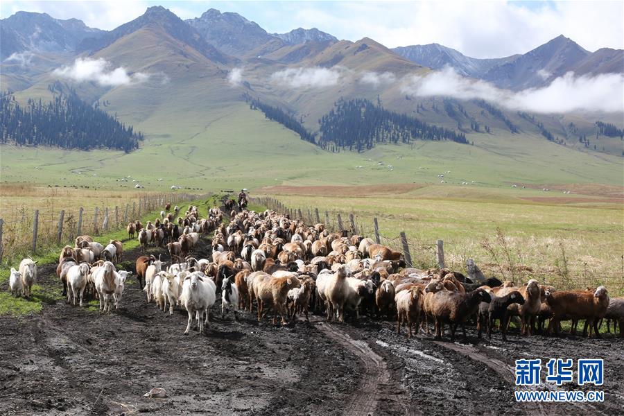 9月7日,牧民在那拉提草原放羊。 那拉提景区位于新疆新源县境内,三面环山,巩乃斯河蜿蜒流过,保留着浓郁的民俗风情和丰富的草原文化。 新华社记者 程丽 摄