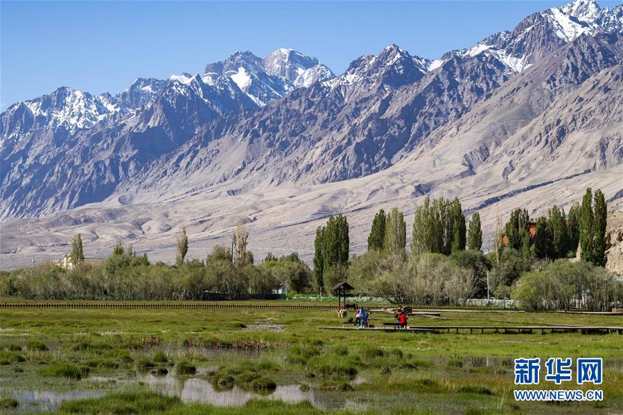 游客在新疆塔什库尔干塔吉克自治县帕米尔高原阿拉尔国家湿地公园游玩(7月9日摄)。 新华社记者 胡虎虎 摄