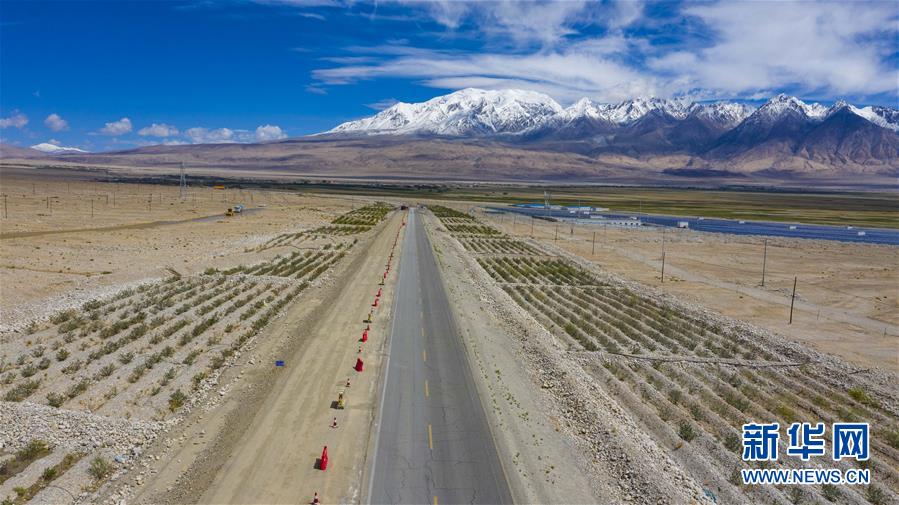 这是在新疆塔什库尔干塔吉克自治县塔合曼乡拍摄的中巴国际公路改扩建工程现场(6月14日无人机拍摄)。 新华社记者 胡虎虎 摄