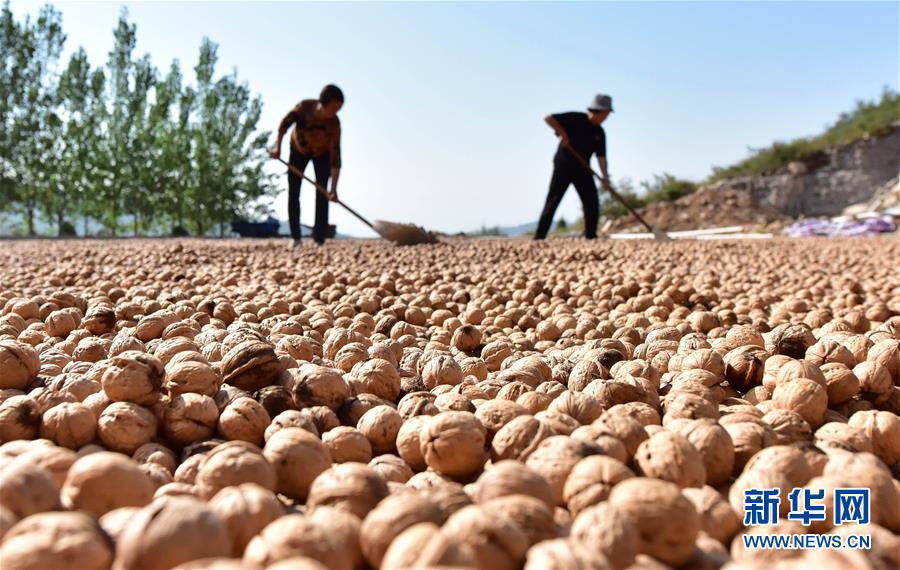 9月8日,邯郸市涉县井店镇台北村村民在晾晒核桃。 当日是二十四节气中的白露,河北省邯郸市涉县多地农民在忙着晾晒丰收的核桃。 新华社记者 朱旭东 摄