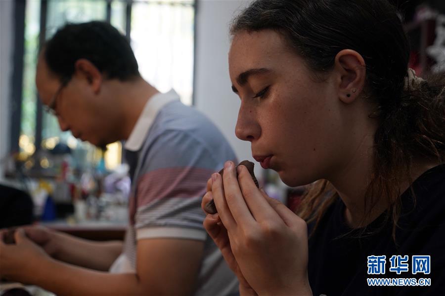 9月8日,在何斌的工作室,一名澳大利亚学生在学习制作“鸟形哨”。 今年43岁的何斌是江苏省级非遗项目“南京泥人”的传承人。他20岁入行,师承惠山泥人非物质文化遗产国家级传承人喻湘涟,从无锡惠山学艺归来后开始创作“南京泥人”。近年来,随着行业的萎缩,何斌身边一些同行纷纷转行。目前,何斌除了带徒弟,还开展一些兴趣班教学,并着手“南京泥人”的文创产品开发,希望能够“以产养遗”,将这门非遗技艺传承下去。 新华社记者 季春鹏 摄