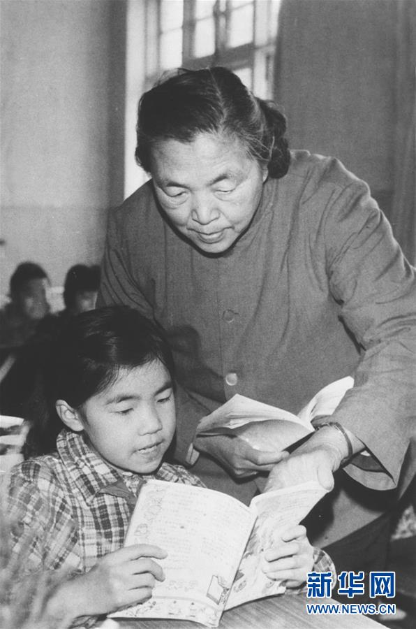 北京第二实验小学的霍懋征老师在辅导学生学习(资料照片)。新华社发