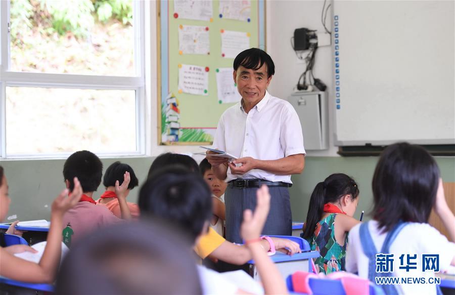 庄桂淦老师在给孩子们上安全知识课(9月4日摄)。新华社记者林善传摄