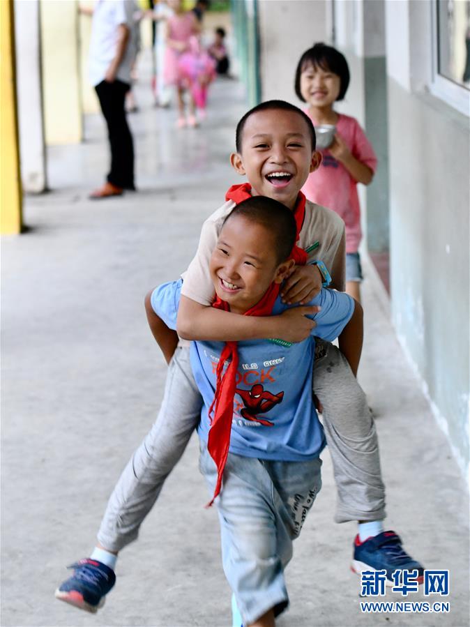 两名学生下课后在学校走廊玩耍(9月3日摄)。新华社记者姜克红摄
