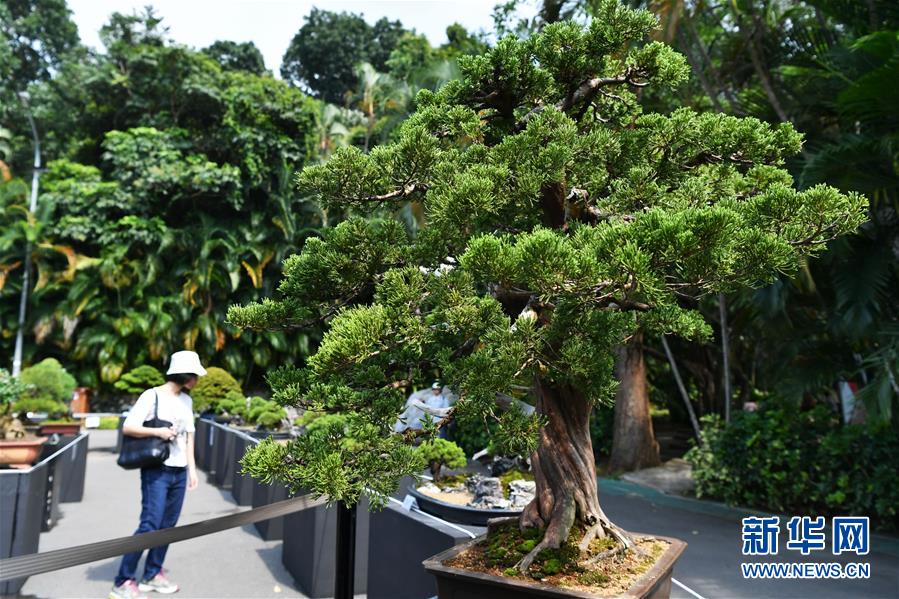 9月9日,一名参观者在台北士林园艺所观赏盆景。新华社记者 陈斌 摄