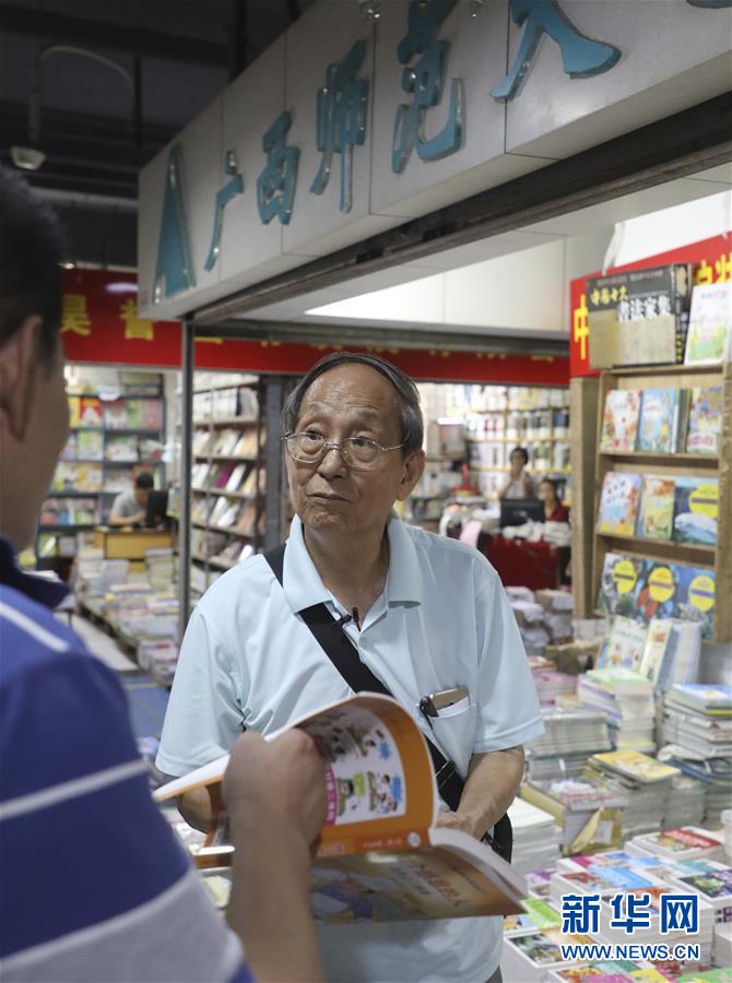 广州市图书批发市场,黄起鹏与书商反复沟通确认图书质量和价格等事宜(9月5日摄)。新华社记者 李嘉乐 摄