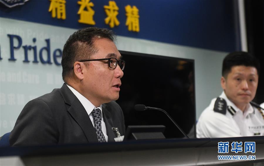9月9日,有组织罪案及三合会调查科高级警司李桂华(左)在记者会上。 新华社记者 卢汉欣 摄