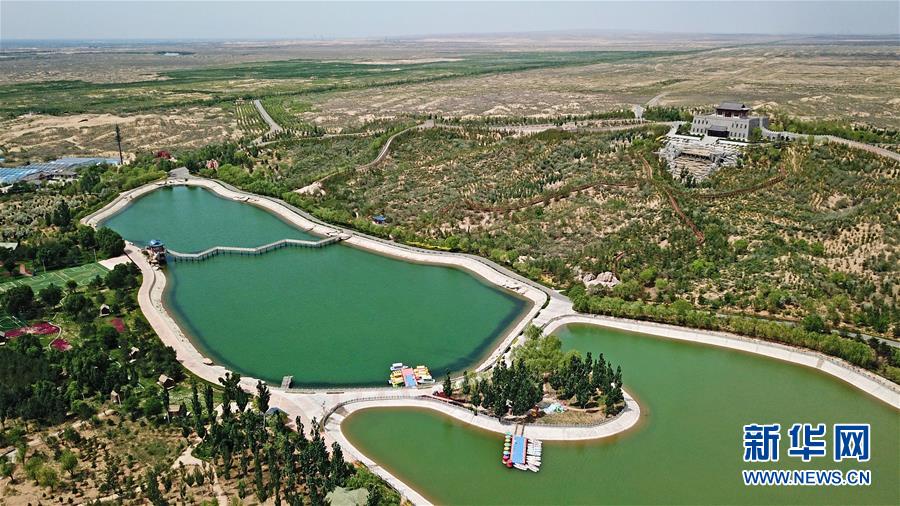宁夏回族自治区灵武市白芨滩国家沙漠公园(2018年5月25日无人机拍摄)。新华社记者 王鹏 摄