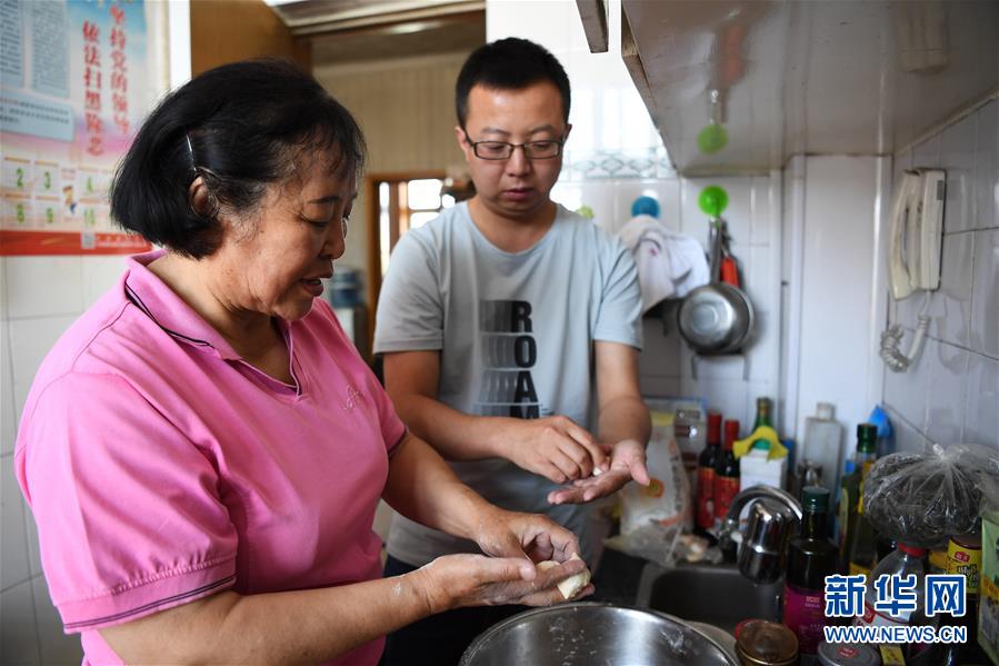 9月7日,李月娥和学生秦智明在家中包饺子。当日,曾在硫磺沟小学读书的秦智明来到李月娥家中看望老师,秦智明姐弟三人都是李月娥的学生。 68岁的李月娥曾是山西省忻州市宁武县硫磺沟小学的一名乡村教师。从1967年参加工作到2011年退休,她在山区执教四十余载。 爱好文艺的李月娥,曾有机会成为县剧团的一名演员。然而,在硫磺沟工作的父亲,一次无意中说起宁武山沟里的孩子上学难,这引起了李月娥的深思。经过激烈的思想斗争,她决定去宁武当一名山村教师。走进山沟的她,一待就是一辈子。李月娥获得过“全国教育系统劳动模范”称号,也曾经被调到其他中学担任校长职务,但是她始终忘不了硫磺沟的孩子们,坚持回到山沟里教学。 起初,硫磺沟小学的教学环境十分艰苦。一座破旧的古庙就是学校,而全村30多个学龄儿童来上学的只有一半。为此,李月娥一方面找村支书动员乡亲整理学校环境,一方面到村里挨家挨户走访,并主动担起了接送学生的担子。婚后的李月娥,把家乡的奶奶接来照顾孩子、料理家务。白天时间有限,她就晚上加班批改作业、写教案、并坚持进修学习。乡亲们说她是“两眼一睁,忙到熄灯”。 如今,退休的李老师虽然离开了讲台,但仍心系教育。李月娥说,“做教育工作是我一生的愿望,我要把自己的毕生精力献给宁武的教育事业,希望每一个孩子都有光明的未来。” 教师节前夕,新华社播发了新媒体稿件《我和我的老师:寻找照片中的你》。五张老照片中,有20世纪50年代的高中物理老师,也有近年来坚守在深山里的乡村小学教师。“寻找”稿件播发后受到读者关注,一些热心读者打来电话或发邮件提供线索、讲述老师的故事。目前回访到的是:河南省鲁山县霍庄教学点霍建芳老师,山西省宁武县硫磺沟小学李月娥老师,上海市育才中学已故陆锦容老师的儿子。 “为学莫重于尊师。”今天是第35个教师节,向人民教师道一声:老师辛苦了! 新华社记者杨晨光摄