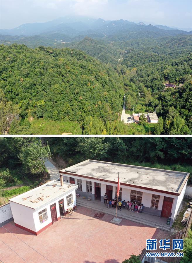 上图为9月6日无人机拍摄的河南省鲁山县霍庄教学点(右下);下图为霍建芳老师和学生在教室门口(9月6日无人机拍摄)。 今年50岁的霍建芳老师在河南省平顶山市鲁山县尧山镇第五中心小学霍庄教学点(原名霍庄小学)做了34年老师。有人曾这样称赞霍建芳:尽管她去过最远的地方只是县城,可她却给了深山里的孩子一把开启世界的钥匙。 8年后,当新华社记者拿着2011年的老照片再次来到群山环绕的尧山镇,找到霍老师时她正在给学生上课。看到老照片,不善言谈的霍建芳腼腆一笑:“可不好意思,又麻烦你们跑一趟。” 1985年,16岁的霍建芳从鲁山县尧山镇中学毕业后回到家乡大山深处的小学执教。教学点地理位置偏僻,大多数时候这里只有她一名老师。现在有16个孩子在这里上学,分为两个年级和一个学前班。霍老师所教的学生绝大部分都是留守儿童,霍建芳既是孩子们的老师,也是孩子们的“妈妈”。 霍建芳也不是没有打过退堂鼓。“父母岁数大了,我也照顾不到”,说到自己的父母霍老师突然哽咽了,可是她依然选择留下。霍建芳说,“许多人都说农村教师苦。但是只要你用心爱学生,勇于承担你的责任,你就会发现人生的价值。” 教师节前夕,新华社播发了新媒体稿件《我和我的老师:寻找照片中的你》。五张老照片中,有20世纪50年代的高中物理老师,也有近年来坚守在深山里的乡村小学教师。“寻找”稿件播发后受到读者关注,一些热心读者打来电话或发邮件提供线索、讲述老师的故事。目前回访到的是:河南省鲁山县霍庄教学点霍建芳老师,山西省宁武县硫磺沟小学李月娥老师,上海市育才中学已故陆锦容