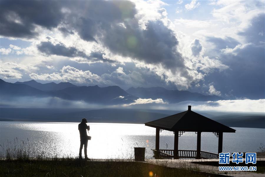 9月10日,游客在山丹马场鸾鸟湖畔赏景拍照。新华社记者 马宁 摄