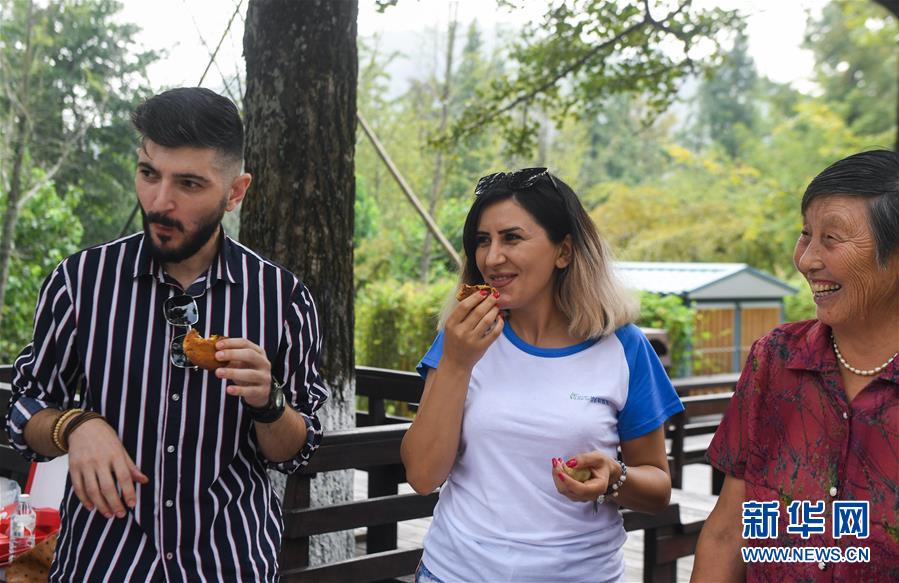 9月11日,外国友人在品尝手工月饼。新华社记者 徐昱 摄