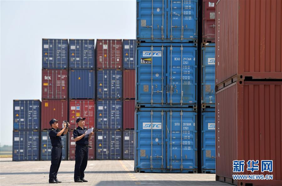 9月11日,在江西南昌的龙头岗综合码头,南昌海关工作人员在抽查货柜。新华社记者 彭昭之 摄