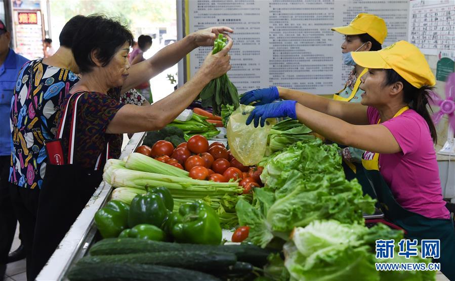 9月11日,市民在海口市金贸文华农贸市场内的“菜篮子”平价菜直营摊位选购蔬菜。新华社记者 杨冠宇 摄