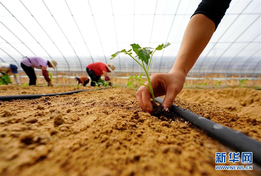 滦州市小马庄镇邢各庄村村民在村集体高效设施农业大棚内栽植作物(9月9日摄)。新华社发(董钧摄)