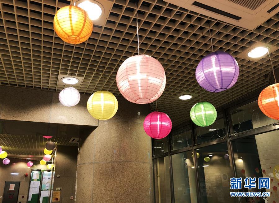 香港市民任先生一家人居住的小区内中秋节日气氛渐浓(9月11日摄)。 新华社记者 李钢 摄