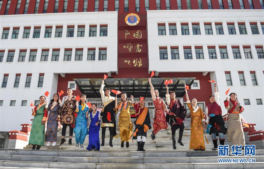 9月12日,西藏大学新校区图书馆前,大学生在参加“青春告白祖国”活动。 当日,西藏大学各族大学生参加“青春告白祖国”活动。 新华社记者 晋美多吉 摄