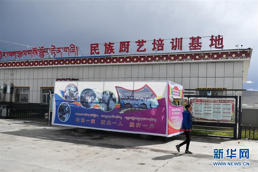 9月12日,一名学生走在曲麻莱县农牧民创业指导服务中心内。 新华社记者 孙瑞博 摄
