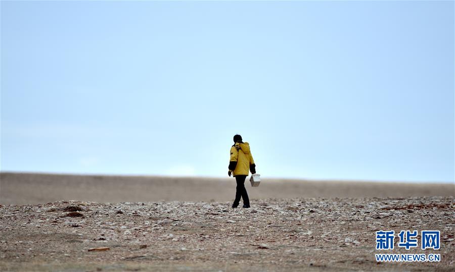 原中科院西北高原生物研究所研究员苏建平在可可西里采集藏羚羊粪便样本(2016年6月7日摄)。新华社记者 吴刚 摄