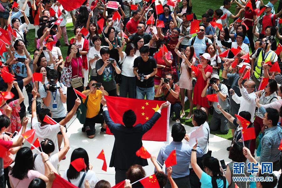 9月13日,市民在香港奥海城手持国旗参加快闪活动。 当日,一场快闪活动在香港奥海城举行。大批香港市民和爱国爱港人士高唱国歌,庆祝中秋节。 新华社记者 卢烨 摄