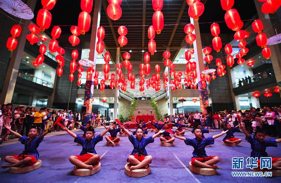 9月13日,小朋友在海南省博物馆表演节目。 当日,海南省博物馆举办“己亥中秋之夜”活动,包括文艺演出、民俗展览、月饼制作等活动,吸引众多游人前来参观体验。 新华社记者 郭程 摄