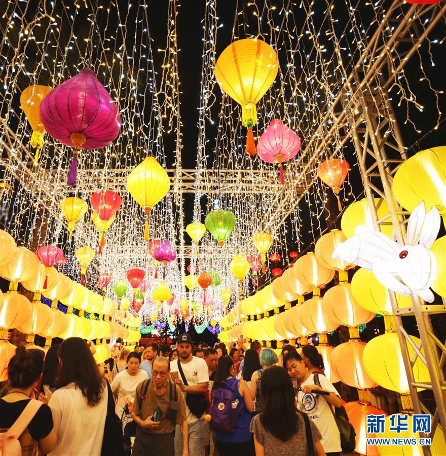 9月13日,市民与游客在香港维多利亚公园欣赏中秋彩灯会。 新华社记者 卢烨 摄
