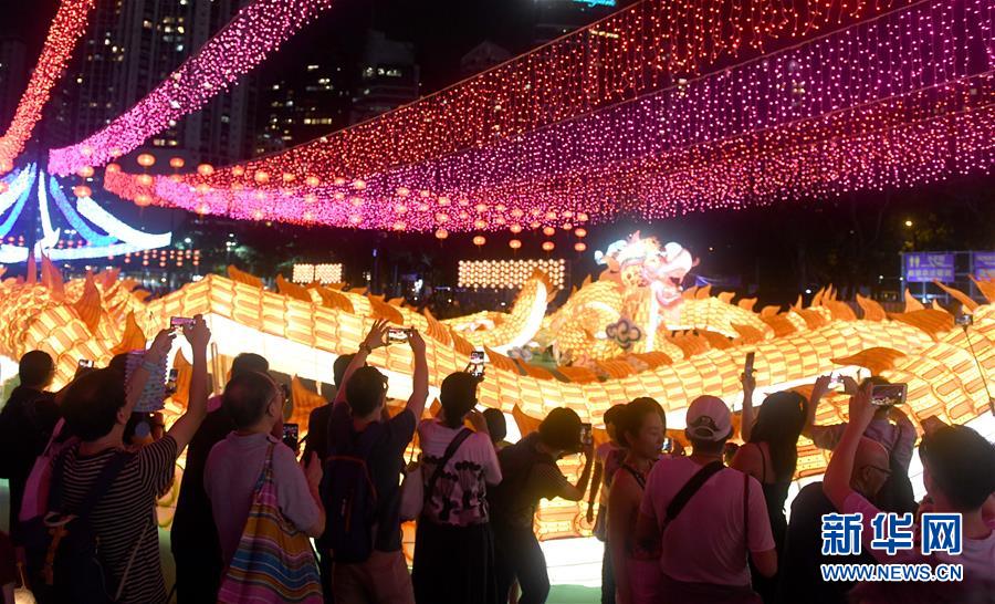 9月13日,市民与游客在香港维多利亚公园欣赏中秋彩灯会。 新华社记者 卢汉欣 摄