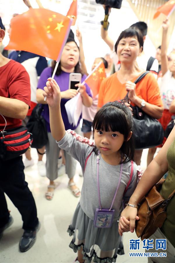 9月14日,市民在香港牛头角淘大商场挥舞五星红旗,齐声合唱国歌,声援此前在淘大商场内因唱国歌而被黑衣人袭击的香港教师李老师。 新华社发