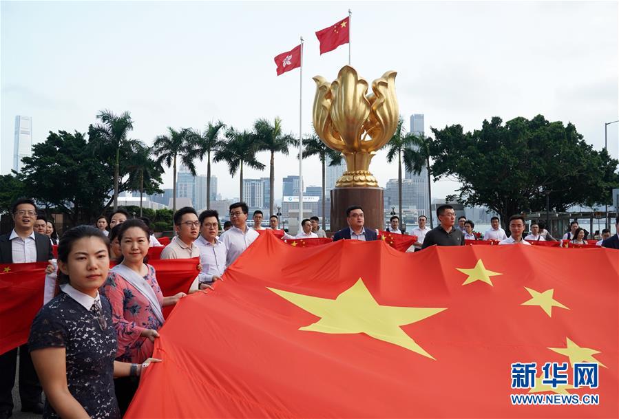 9月17日,在金紫荆广场,香港青年参加国旗展示活动。 新华社记者 李钢 摄