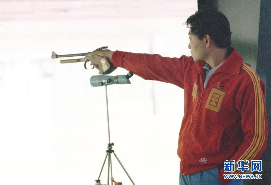 图为1984年7月29日,许海峰在第23届洛杉矶奥运会男子自选手枪慢射比赛中荣获冠军,实现了中国奥运金牌零的突破。 新华社记者官天一摄
