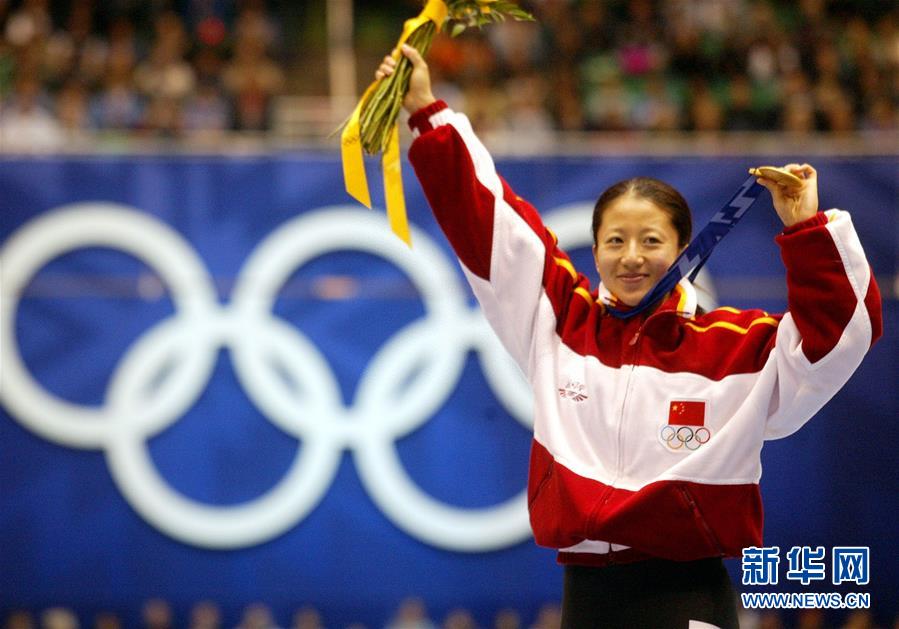 图为2002年2月16日,在盐湖城第19届冬季奥运会短道速滑女子500米决赛中,中国选手杨扬夺得金牌,实现了中国在冬奥会上金牌“零的突破”。 新华社记者王岩摄